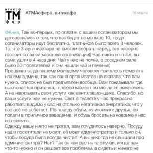 P.S.: Реакция администрации антикафе на честный отзывы на втором фото.