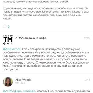 А для АТМАсферы хочется сказать, что ваш ответ в стиле "спасибо за отзыв, исправимся, будем рады видеть вновь"-звучал бы намного кореектнее, чем оскорбления ваших гостей.