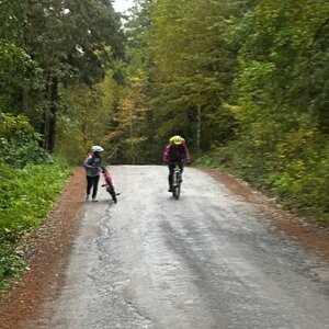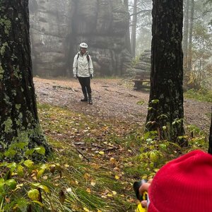 И нетрадиционно порадовала нас на первый день проливным дождём с редкими перерывами. Но, стрёмно было только первые минут двадцать, потом я уже привык и начал получать удовольствие от того, что проезд по огромной луже не "мочит" тебя, потому что ты и так до нитки промок. Хорошо, что было тепло, а на спусках от холода спасал дождевик, поэтому не продувало. Спасибо Алексею за перчатки с пальцами.