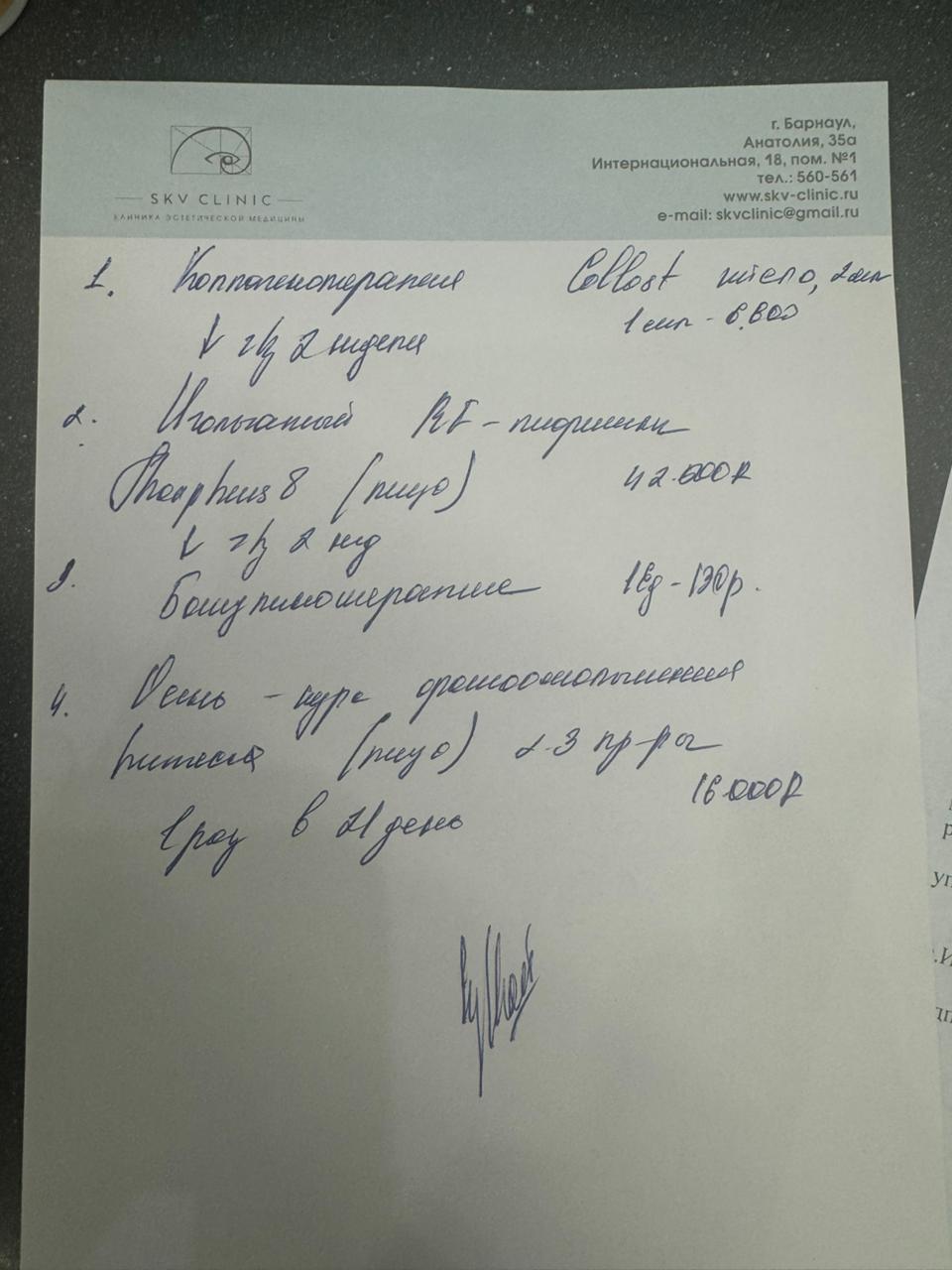 Посещала клинику СKV с просьбой подобрать мне аппаратное и инъекционное лечение для кожи лица , имеются несовершенства кожи.