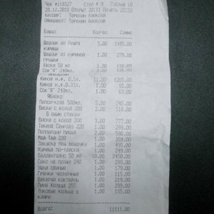 Обслуживал официант Алексей. Утром глянул в чек и увидел позицию которую мы заказали - закуску под водку(495р) чтобы её употребить с алкоголем, но нужного нам алкоголя в наличии не оказалось и через минуту мы решили отказаться от закуски. Алексей понял и сказал что уберет заказ. А в итоге в чеке позиция осталась, я понимаю человеческий фактор мог сыграть своё, но неприятный осадок остался.